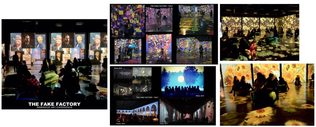 Stefano Fake is an Italian artist and video designer who creates installations using video projections, films, photographs, sculptures, computer graphics and interactive technologies. He is a pioneer and one of the main contemporary exponents of Immersive Art, which aims to sensorially immerse the viewer within the work of art itself. Graduated in Political Science in Milan, followed Masters in directing in Madrid, Los Angeles and New York. From 1997 to 2007 he moved to Florence and created the virtual sets for the Krypton Theater Company. In 2001 he founded The Fake Factory, a studio specialized in Immersive Art, Projection Art and Videomapping. In just a few years, this laboratory becomes a point of reference in the context of digital and immersive art at a national and international level, participating in the creation of numerous projects: immersive exhibitions, video mapping, architectural light installations, video production, video scenography for theatres, fashion, visual environments for museums, galleries and cultural events, production of multi-sensory works, video installations, video art works. In 2005 he made one of his first 3D videomappings (architectural video projections that redesign the facades of buildings with optical illusions), this technique will be reused several times by The Fake Factory: Bastioni di Porta Venezia, Piazza Campidoglio Rome, Castello Sforzesco Milan, Ponte Vecchio, Carrara marble quarries, Palazzo del Senato Milan, Basilica of Santo Spirito Florence, Villa Ephrussi de Rothschild, Teatro della Pegola Florence, Stazione Leopolda, Palazzo Marino, Palazzo Corsini, Opera di Firenze, Palazzo della Farnesina, Condeduque Madrid. In 2006 he began exhibiting the Immersive Mirror Rooms, immersive environments created with video projections and reflective surfaces. Since 2010 he has been collaborating with the Italian Cinema Orchestra to bring film soundtracks to the world through multimedia concerts. Since 2015 he has been creating Immersive Exhibitions in Italy and in the world, reinterpreting the works of artists of the past with digital languages and technologies. His works (The Art of Colors Immersive Experience, The Italian Beauty, Caravaggio Experience, Klimt Experience, Monet Experience and the French Impressionists, Modigliani Art Experience, Leonardo da Vinci Body Immersion, Leonardo & Warhol The Genius Experience, Inside Magritte, Bach Experience) define the format internationally, thanks to an unprecedented success with audiences and critics (+ 5 million visitors overall in the period 2012-2022). Since 2019 he has been the creator and artistic director of the FARNESINA DIGITAL ART EXPERIENCE project, in collaboration with the Italian Ministry of Foreign Affairs, with the aim of producing, exhibiting and communicating Italian digital art in the world. Websites: stefanofake.art / thefakefactory.art / immersiveexperience.art / immersivemirrorroom.art / fakeartist.art